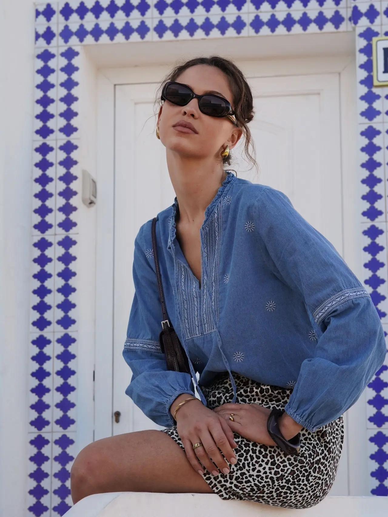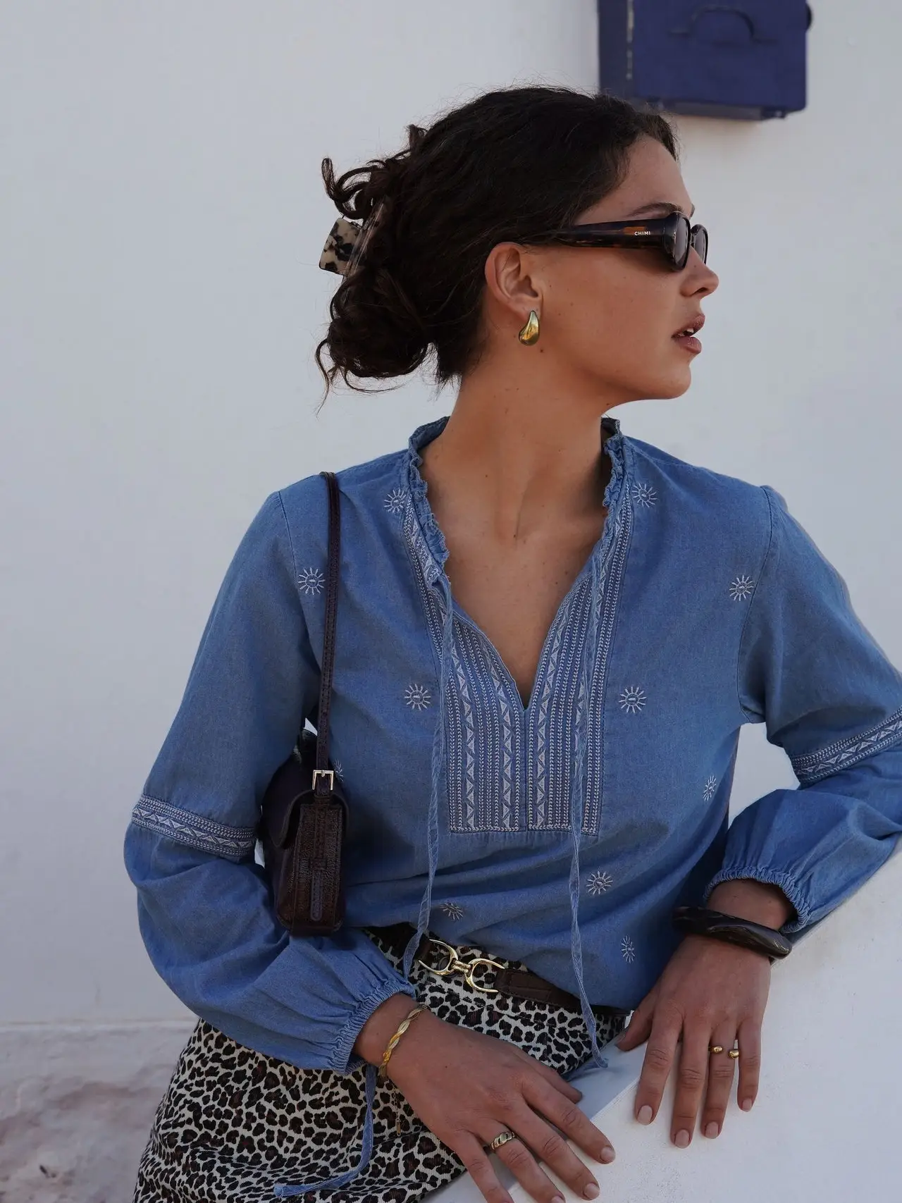 Blouse Céleste en denim brodé