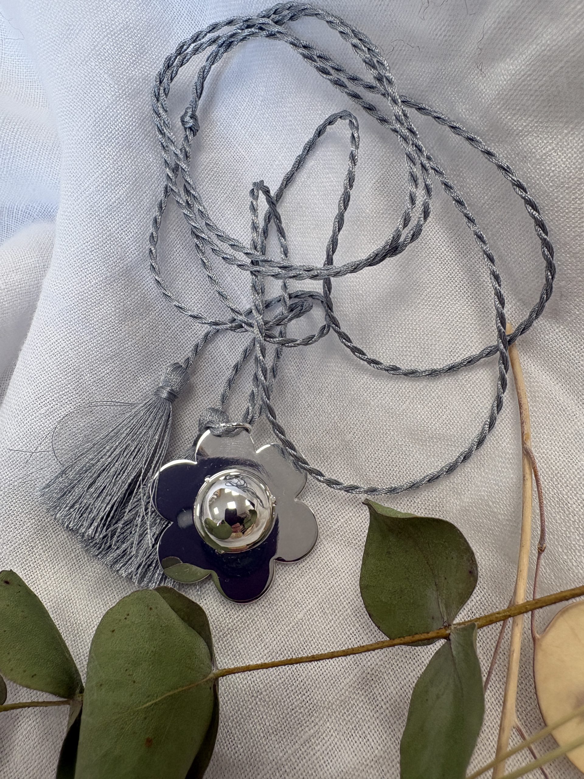 Bola de grossesse PAQUERETTE argent cordon de soie torsadé nuage