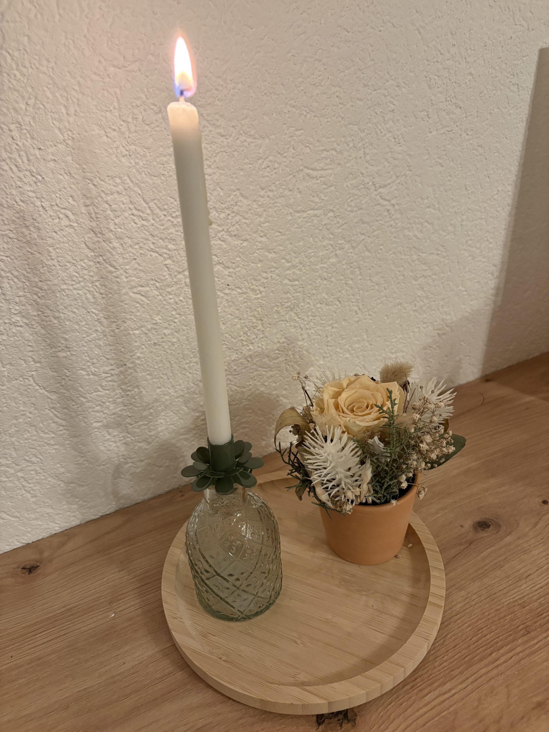 Système de »bougeoir » rond à intégrer dans n’importe quel contenant pour en faire un bougeoir.