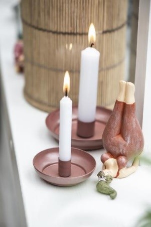 Joli bougeoir rose à intégrer dans une déco, sur une table de repas ou sur un meuble.