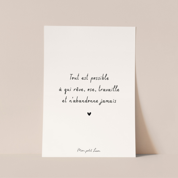 Carte A6 Tout est possible à qui rêve, ose, travaille et n’abandonne jamais
