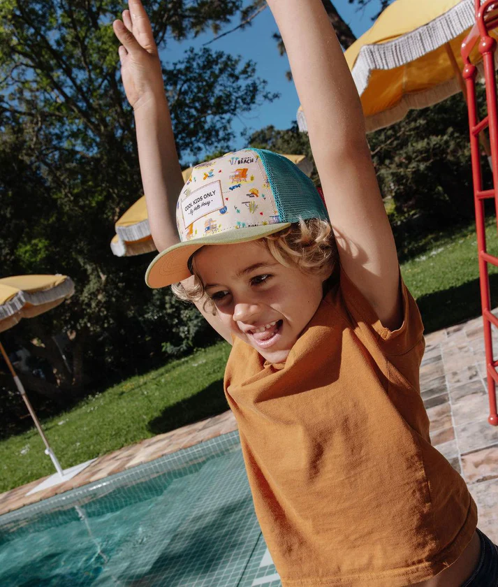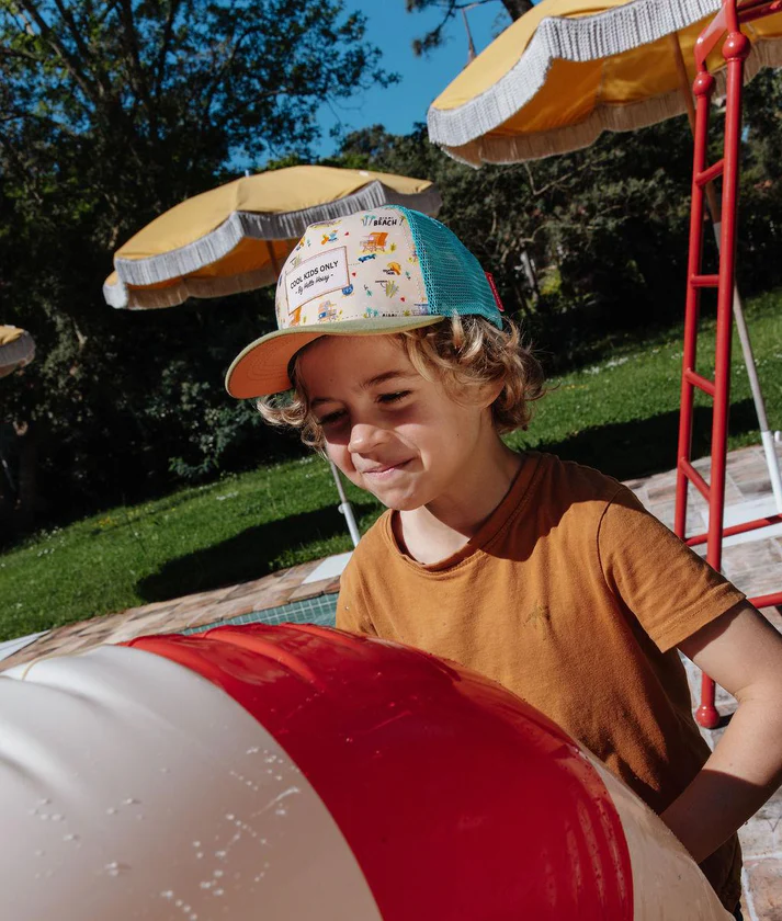 Découvrez la Casquette pour enfants, Miami Beach. Style trucker premium, motif solaire, visière courbée.
