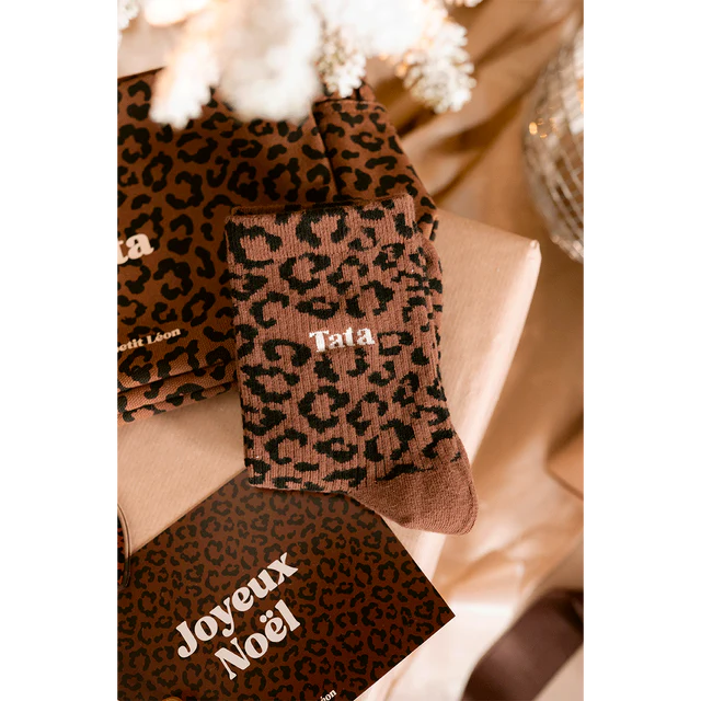 Une édition limitée en léopard marron foncé avec son petit mot Tata au milieu.