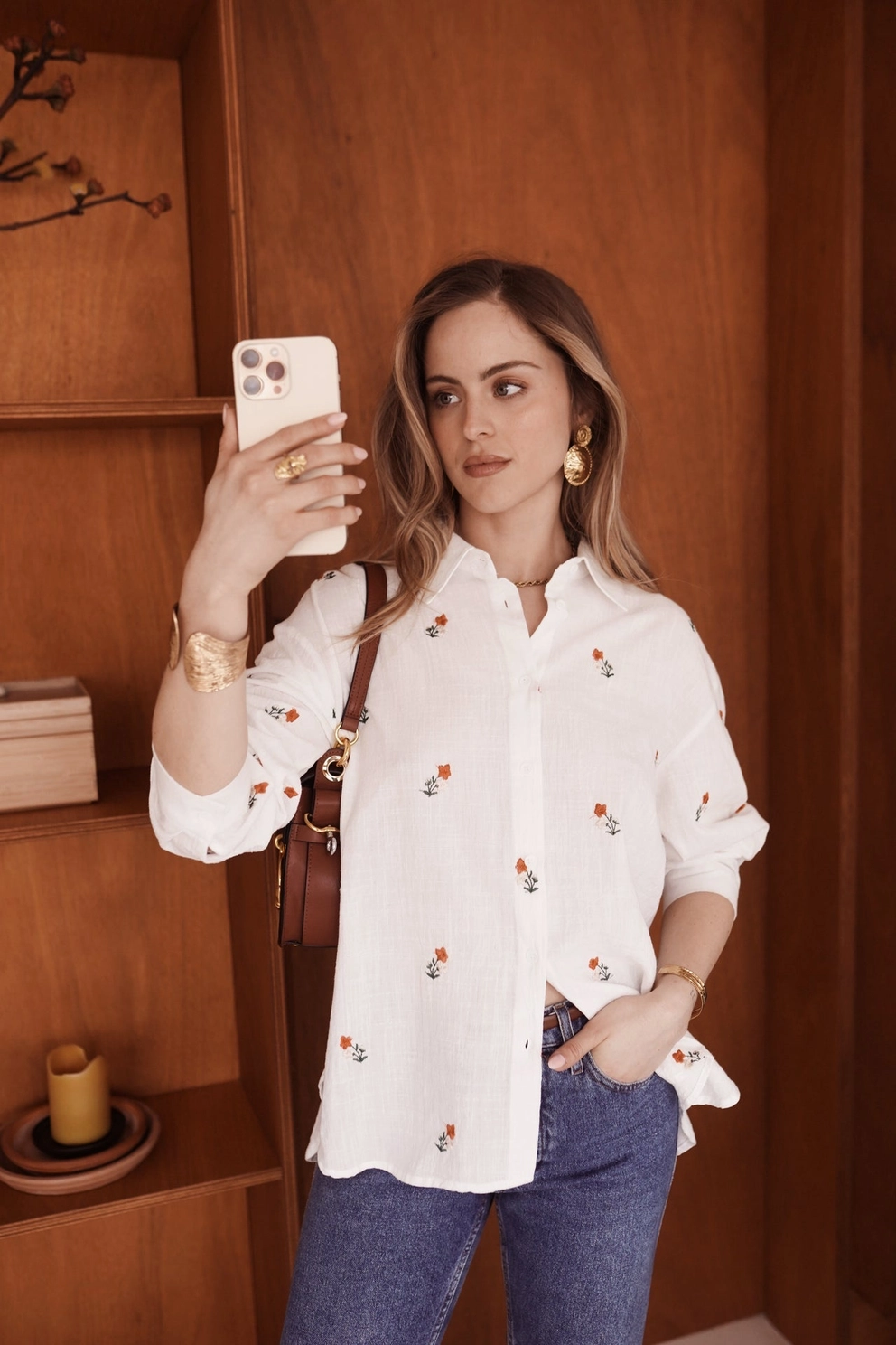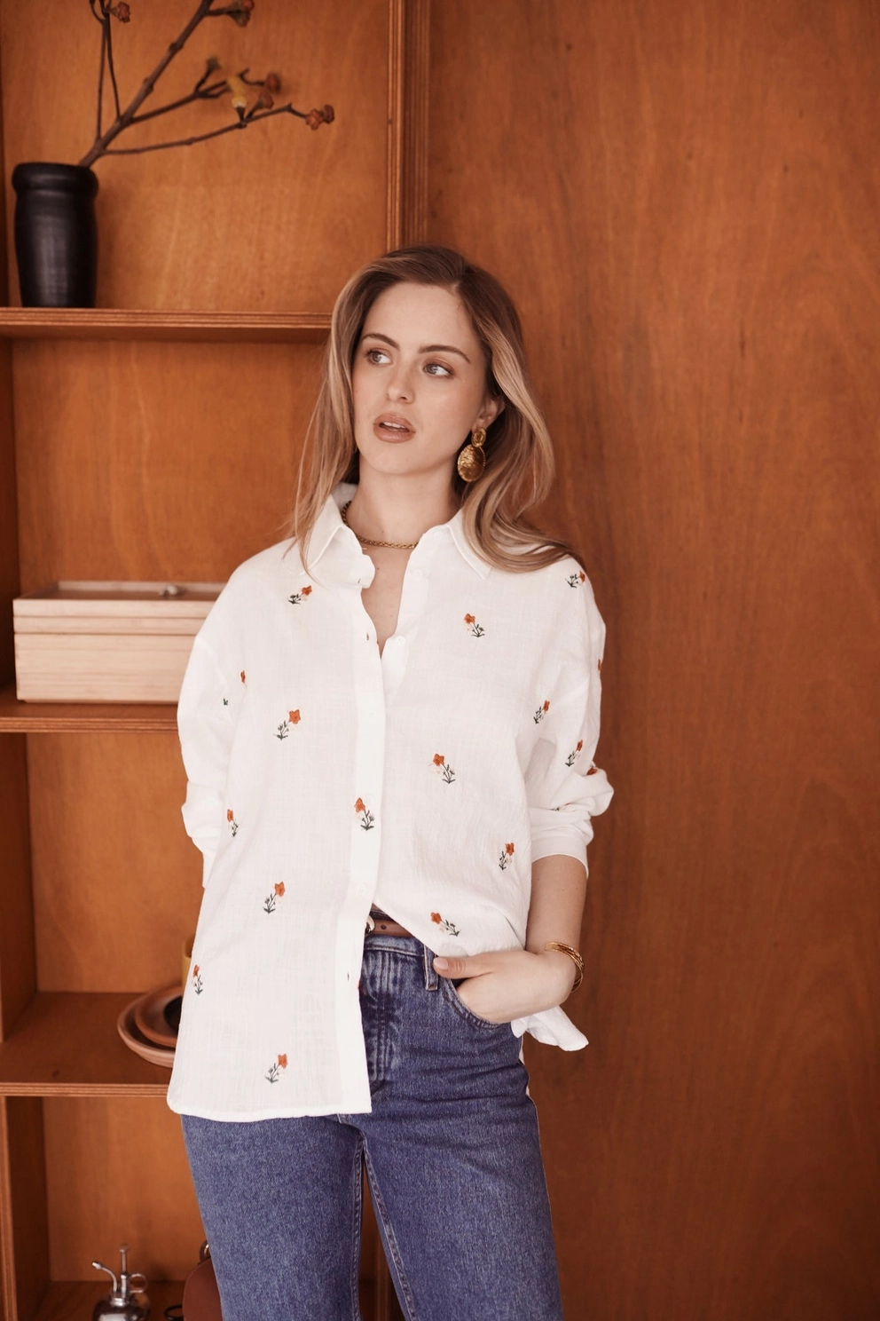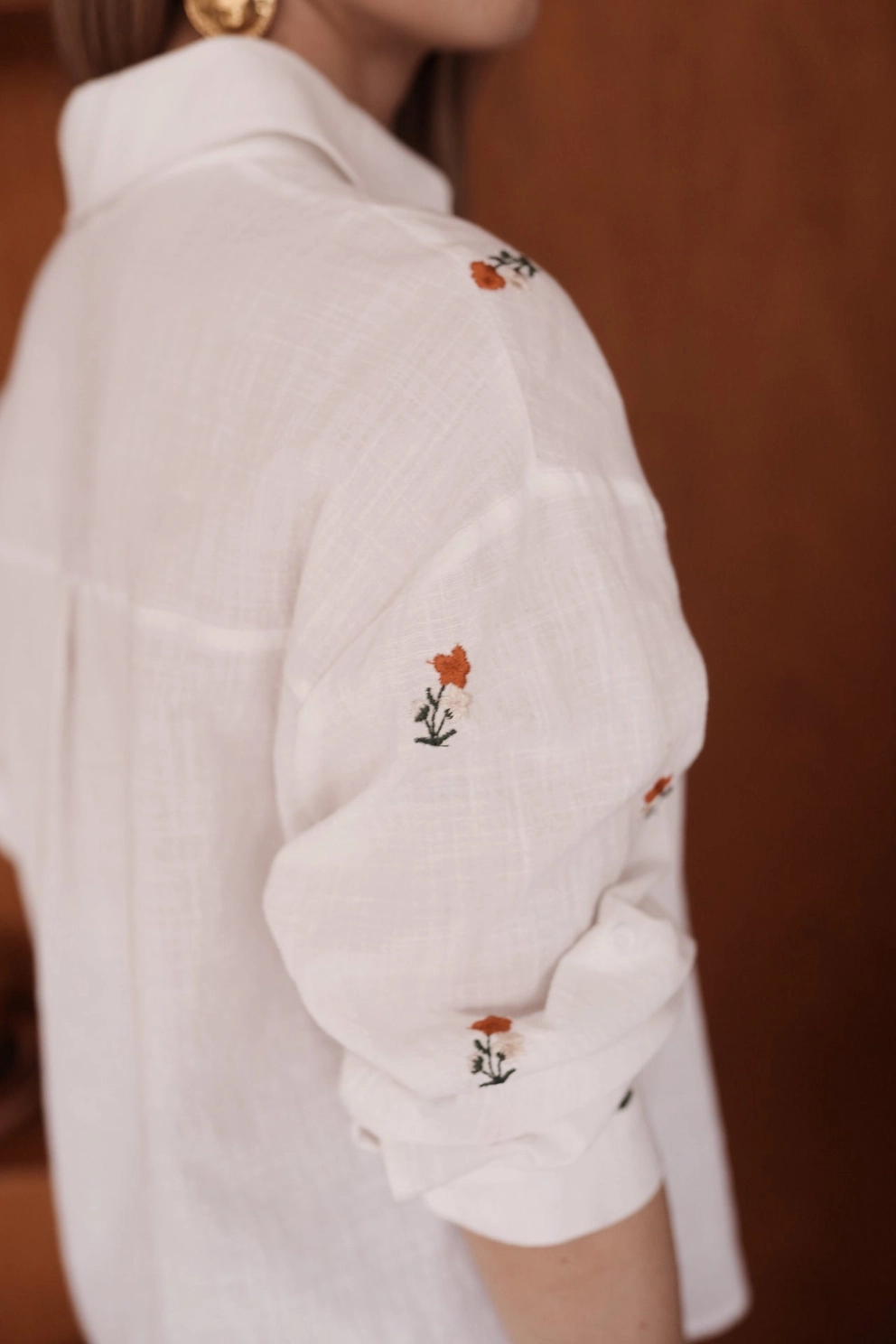Chemise en coton léger au toucher doux, avec des broderies florales discrètes et délicates. un esprit bohème subtil.