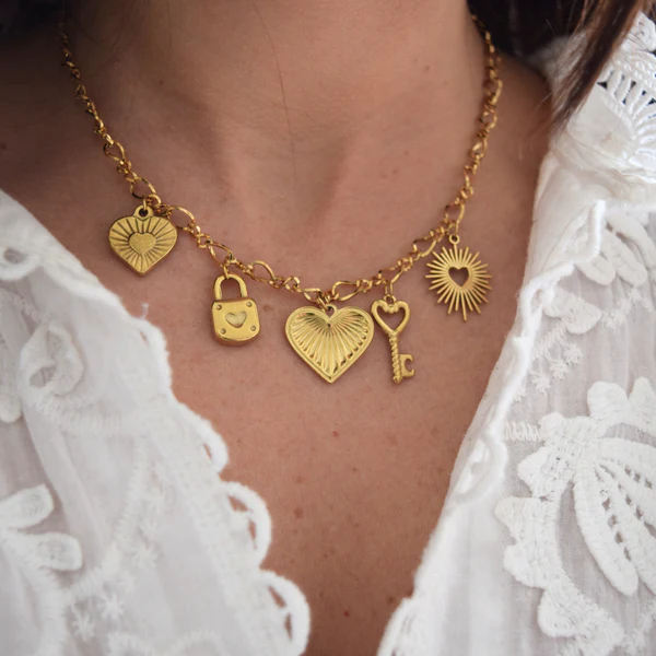 Composé de cinq charms autour du thème du cœur, il symbolise les émotions, les liens forts et les histoires personnelles qui nous accompagnent chaque jour.