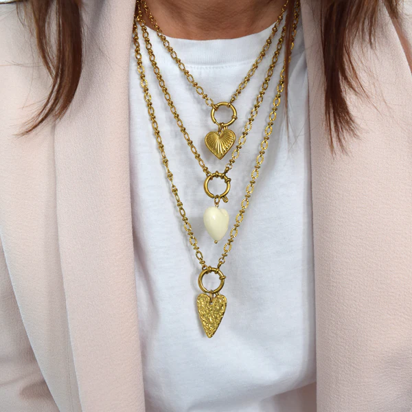 Le collier CORA se distingue par son design modulable et son fermoir frontal élégant, pensé pour accueillir le pendentif Coeur strié.