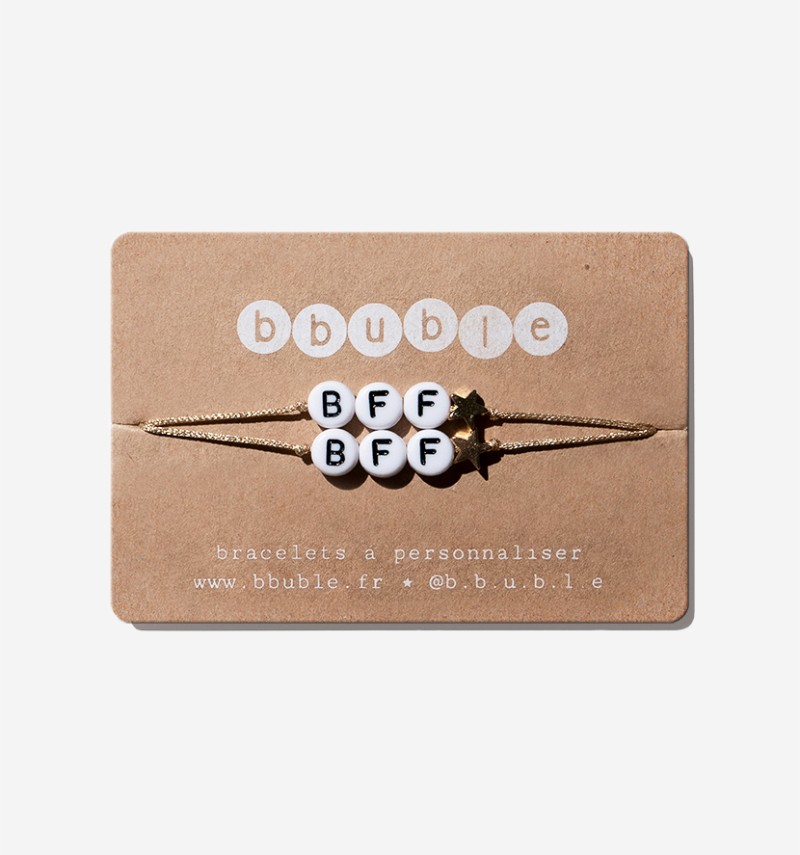 Ce bracelet « BFF☆ » est composé de perles lettres blanches, d’une étoile dorée et d’un cordon doré.