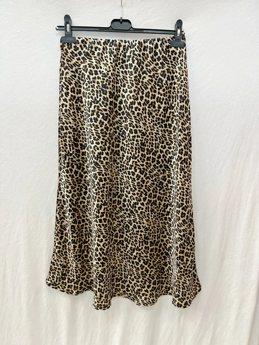 Jupe satinée tendance avec son imprimé léopard.