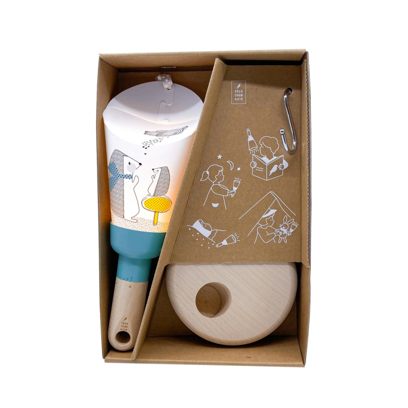 LAMPE 5-EN-1 : Selon les périodes de sa vie ou selon les moments de la journée, elle se transforme en veilleuse, lampe torche, liseuse, applique murale avec son crochet ou en lampe de chevet avec son joli socle en cœur de hêtre…
