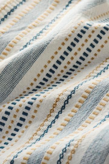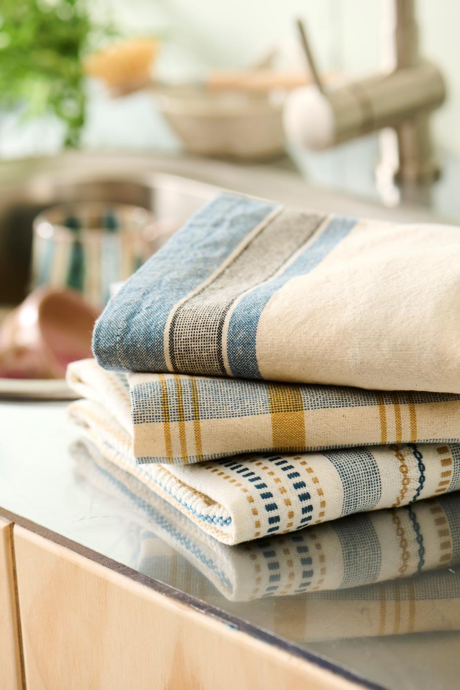 Linge de cuisine Céline blanc avec motif tissé bleu et beige – Image 5