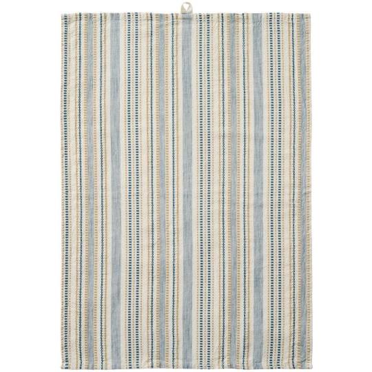 Linge de cuisine Céline blanc avec motif tissé bleu et beige