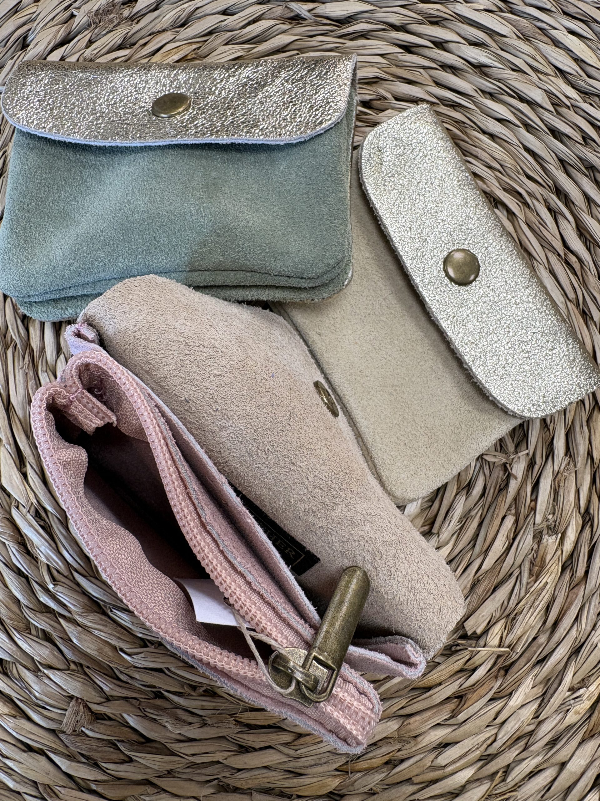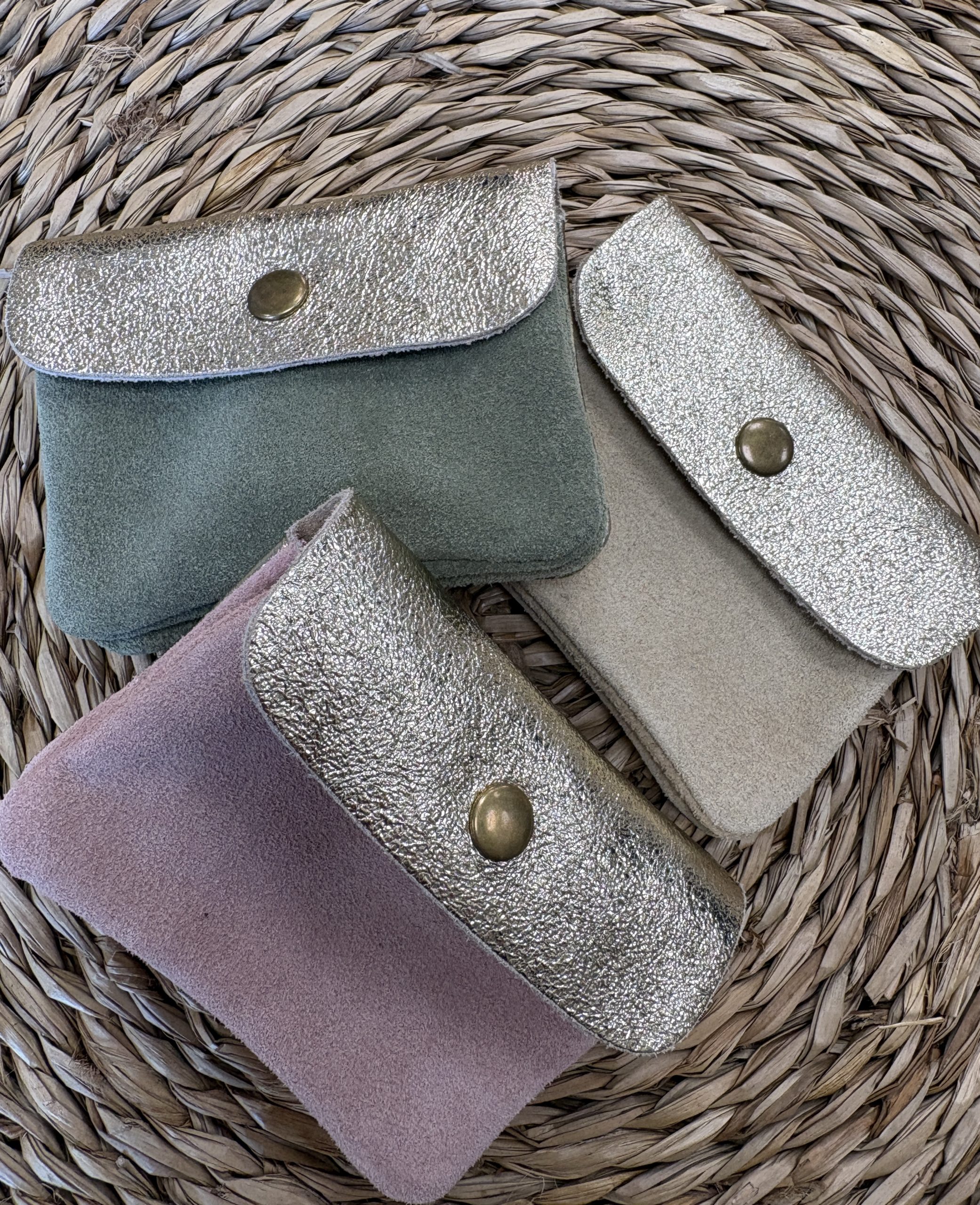 Petit porte-monnaies en cuir retourné coloré avec rabat et arrière doré