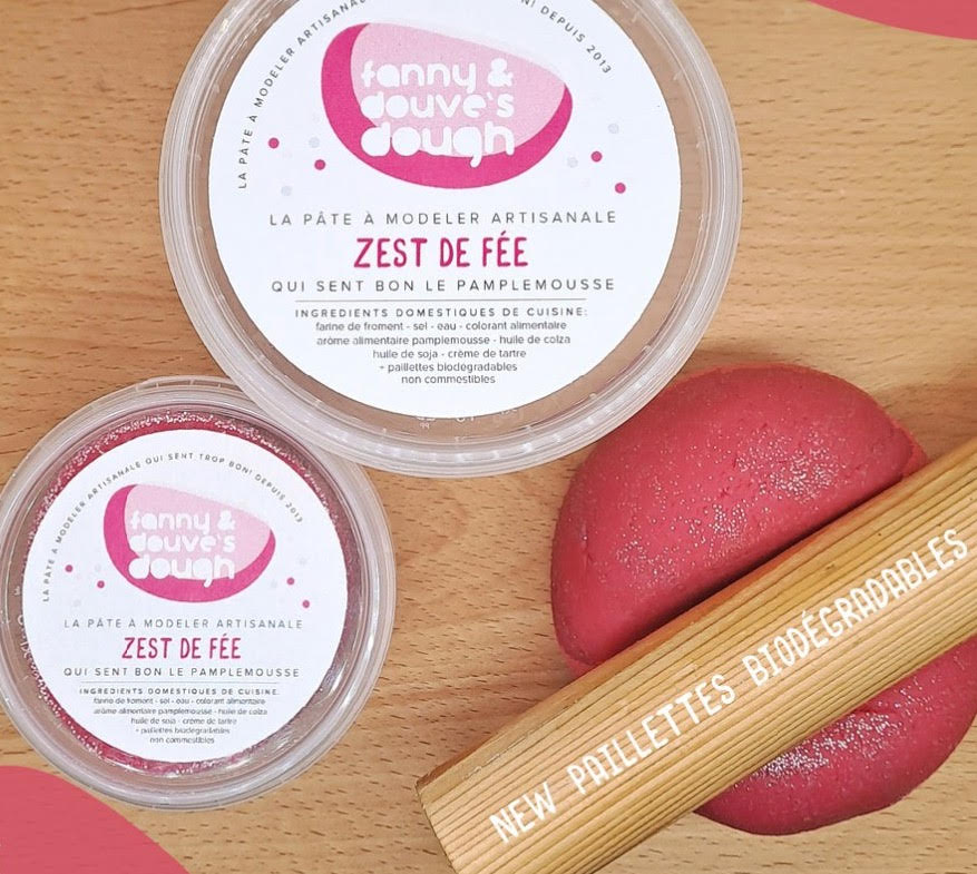 Les pâtes à modeler Fanny & Douve’s Dough sont faites uniquement d’ingrédients domestiques et utilisables en cuisine: eau, farine, sel, colorant alimentaire, arôme alimentaire, huile et crème de tartre. Elles sont entièrement faites de nos mains et nous assurons la traçabilité de chaque lot “cuisiné” ou fabriqué.