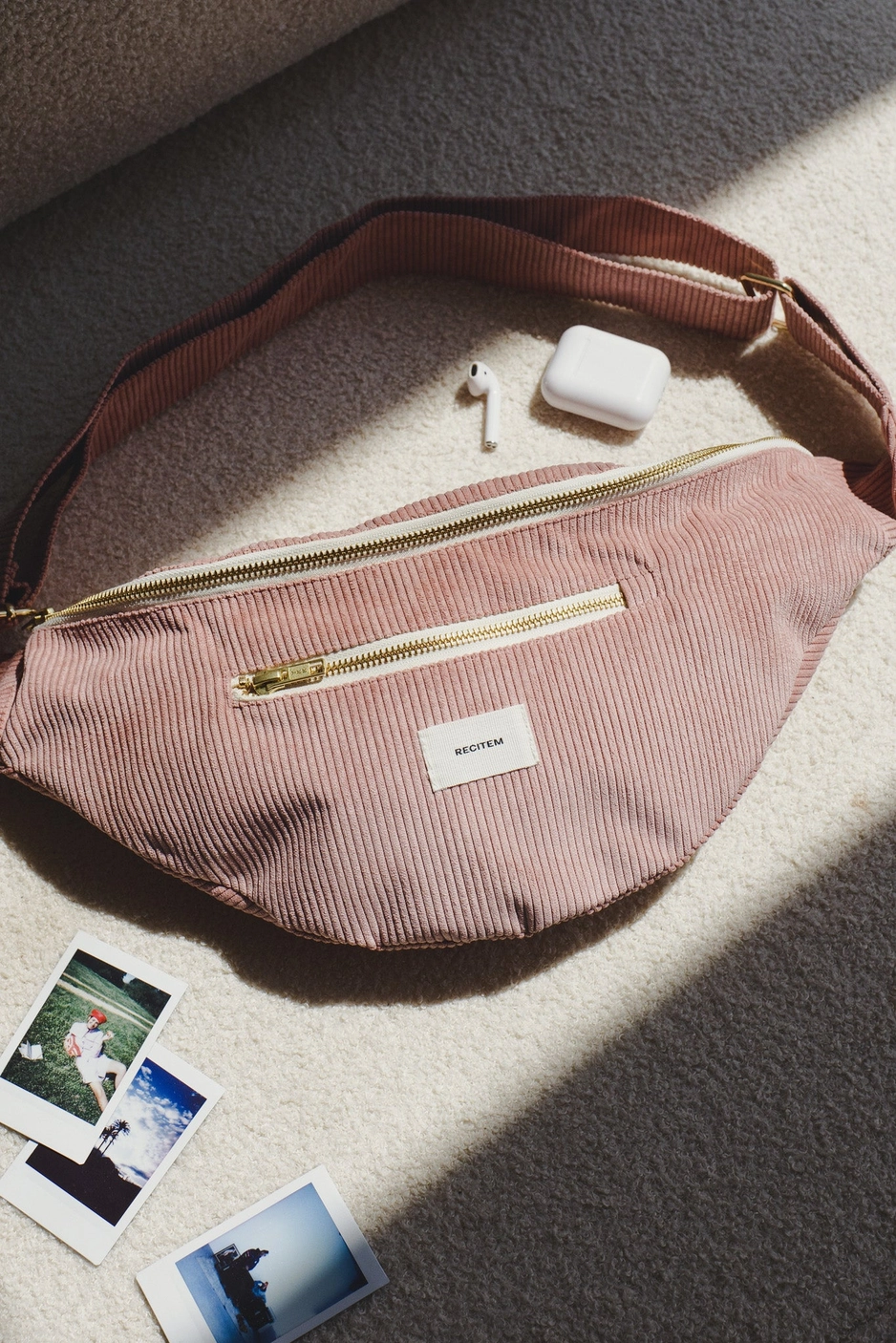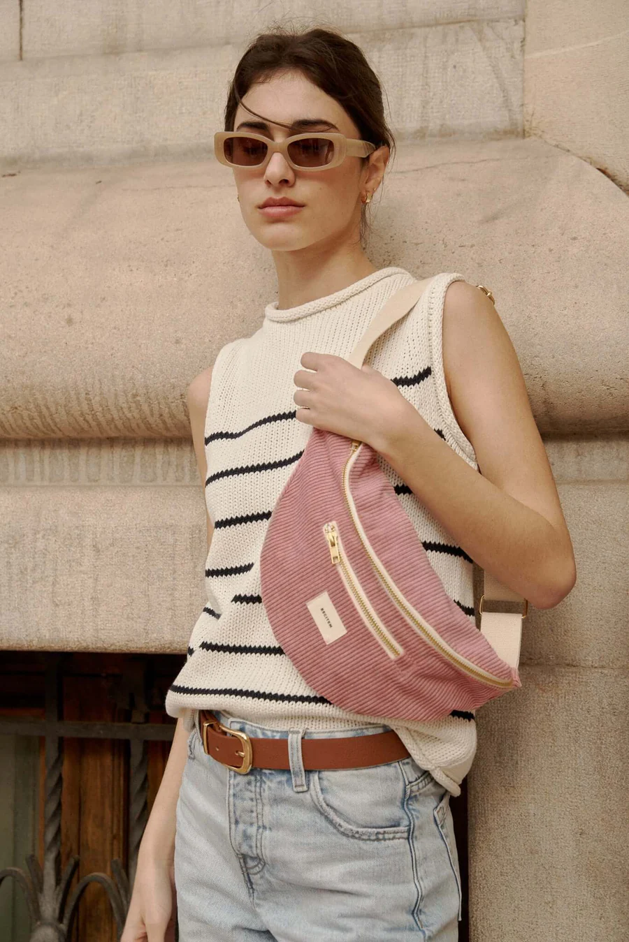 Sac banane en velours vieux rose Nina