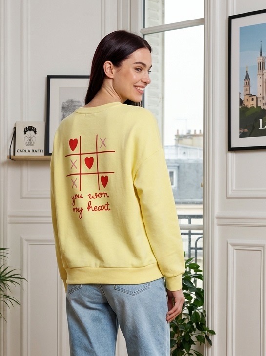 Sweat jaune clair - jeu du morpion