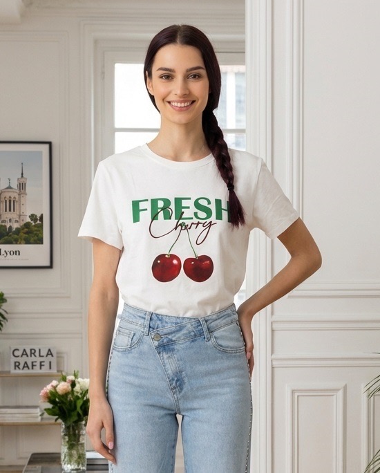 T-shirt Fresh Cherry en coton, idéal pour un été léger et stylé.
