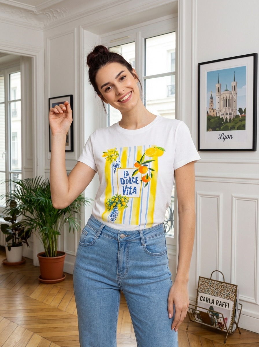 T-shirt La dolce vita en coton, idéal pour un été léger et stylé.