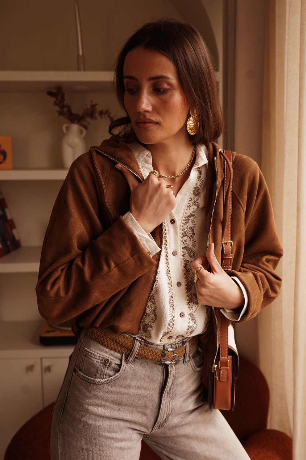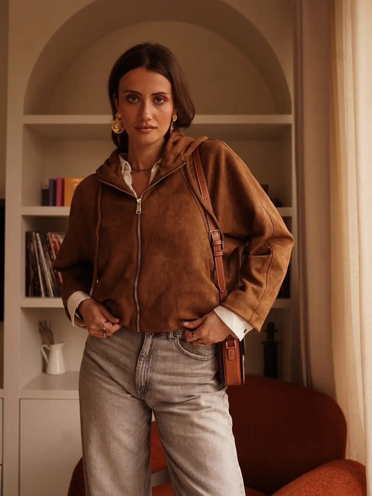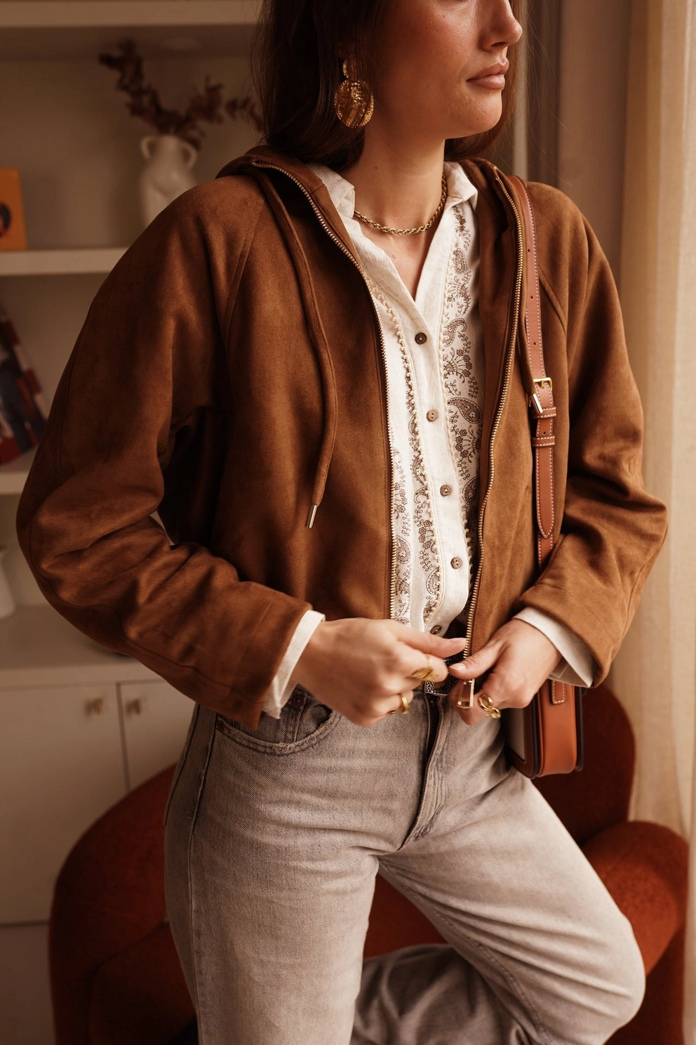 Adoptez un style à la fois chic et décontracté avec cette superbe veste à capuche en suédine douce. Sa texture veloutée apporte une touche d’élégance naturelle à toutes vos tenues.